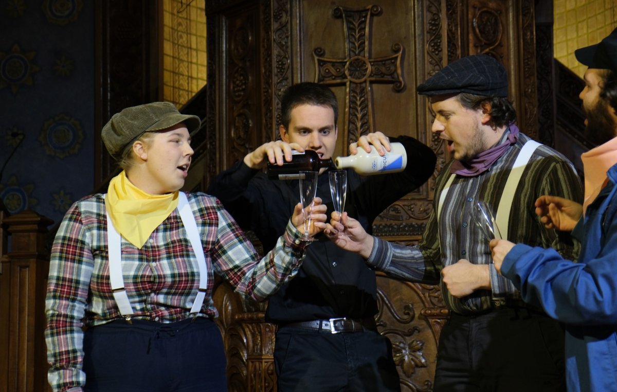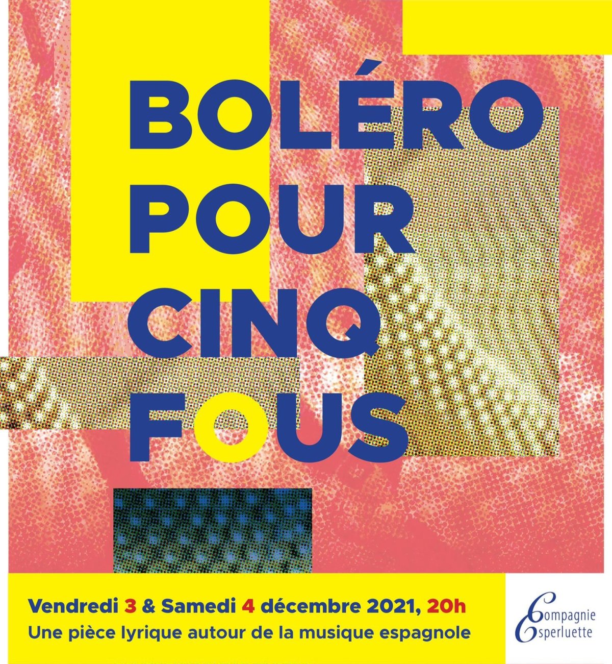 Initialement prévue en mars 2020, puis en mars 2021, la comédie lyrique Boléro pour neuf fous est remaniée et enfin représentée en décembre 2021 au temple de Carouge. La pièce tourne autour de la musique espagnole et fait la part belle aux zarzuelas - l'équivalent ibère de nos opérettes. Elle narre les amours compliquées d'une jeune marquise et d'un peintre itinérant. Philtre d'amour riment ainsi avec musique endiablée, peinture et paillettes !